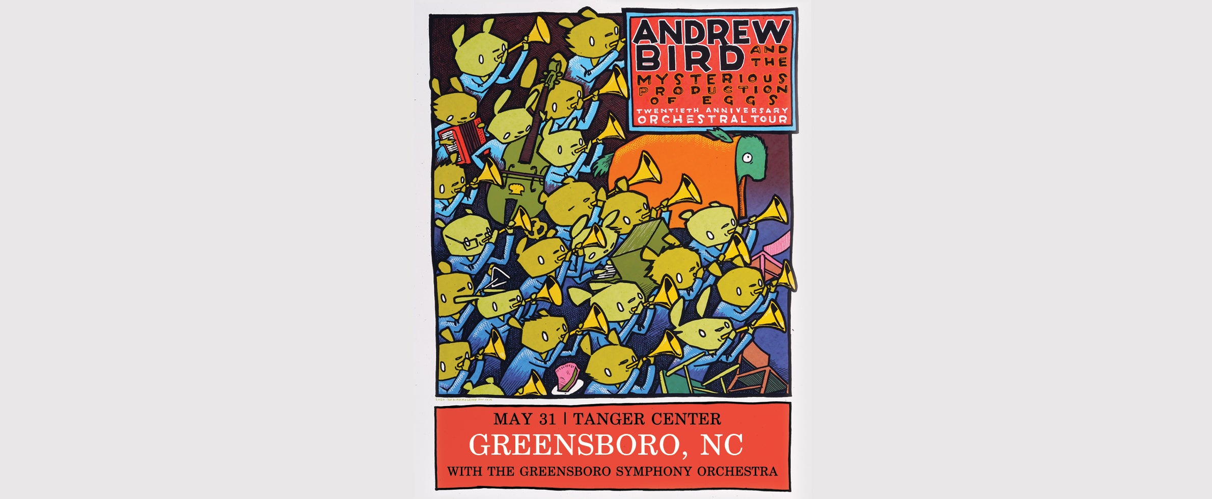 With a distinctive sound that resists categorization, Grammy nominated violinist, songwriter and multi-instrumentalist, Andrew Bird, makes his debut with the Greensboro Symphony Orchestra. Balancing swelling sounds with jazz, folk, and pop melodies in an unforgettable display of unique virtuosity, Bird celebrates the 20th anniversary of his acclaimed record The Mysterious Production of Eggs. Featuring a top-to-bottom album performance with orchestral arrangements, Bird caps off the performance with a suite of fan-favorite tunes from his near 30-year repertoire.