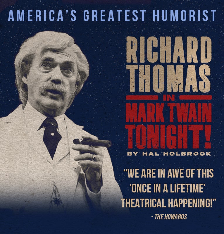 Emmy-Award® winning Actor Richard Thomas brings to life “the nation’s one true comic genius” (The New York Times) in Mark Twain Tonight!, written and originally performed by Hal Holbrook. Join the millions who have cheered for the legendary one-man show, bursting with Twain’s “uproariously funny” and “pungently wise” (Time Magazine) humor.