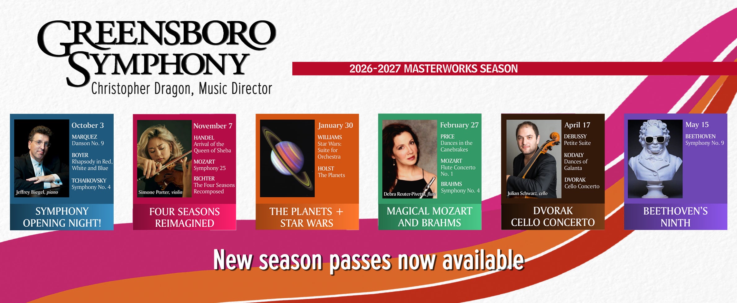 For a full line-up of Greensboro Symphony Orchestra performances, including the current season, see below.