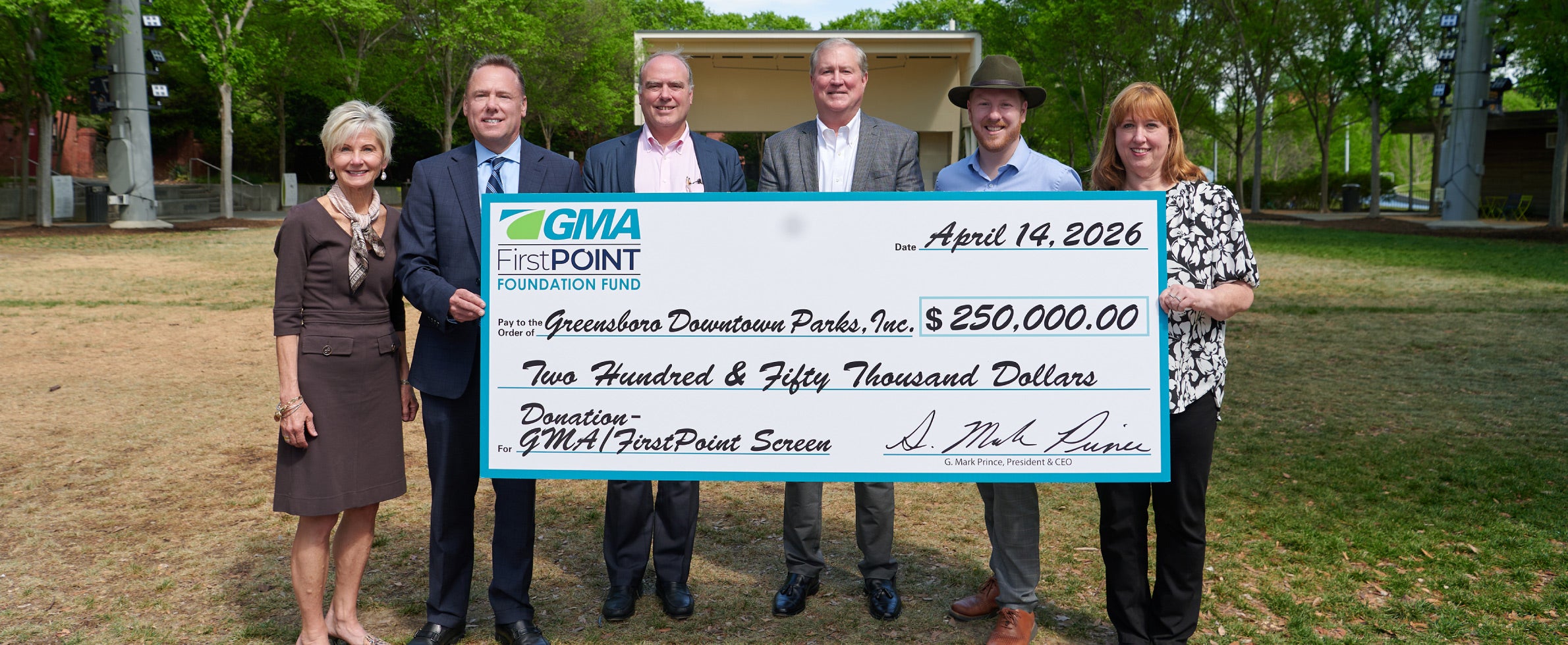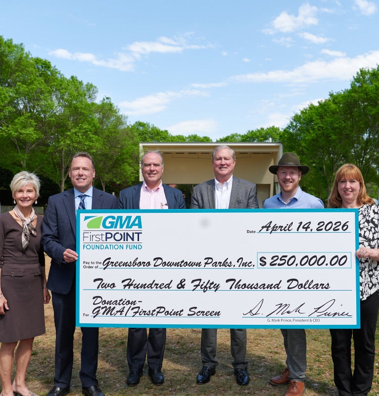 Greensboro Downtown Parks, Inc. (GDPI) and the Steven Tanger Center for the Performing Arts today announced that the Guilford Merchants Association(GMA)/FirstPoint Fund has committed a $250,000 leadership gift to support the installation of The GMA/FirstPoint Screen, a high-definition LED screen and sound system that will serve both LeBauer Park and the Tanger Center.